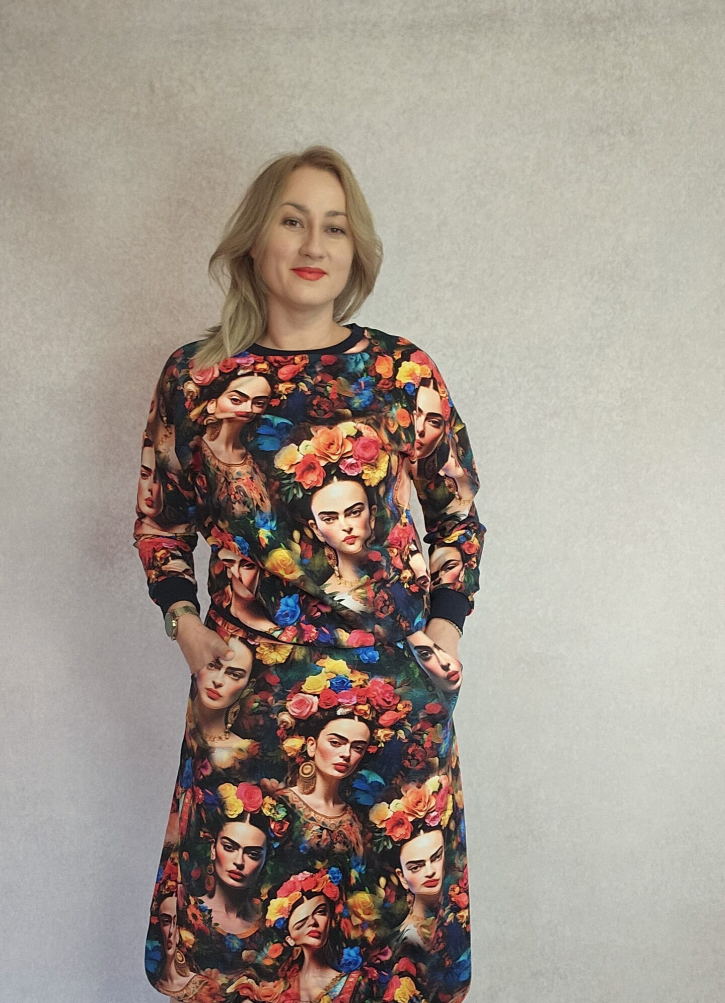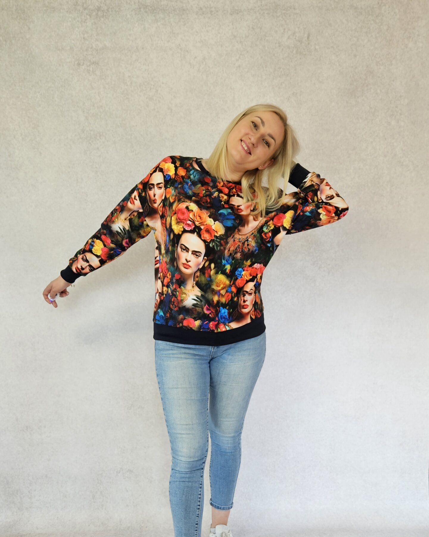 Materiał dresówka pętelka o składzie 95% bawełna, 5% elastan.