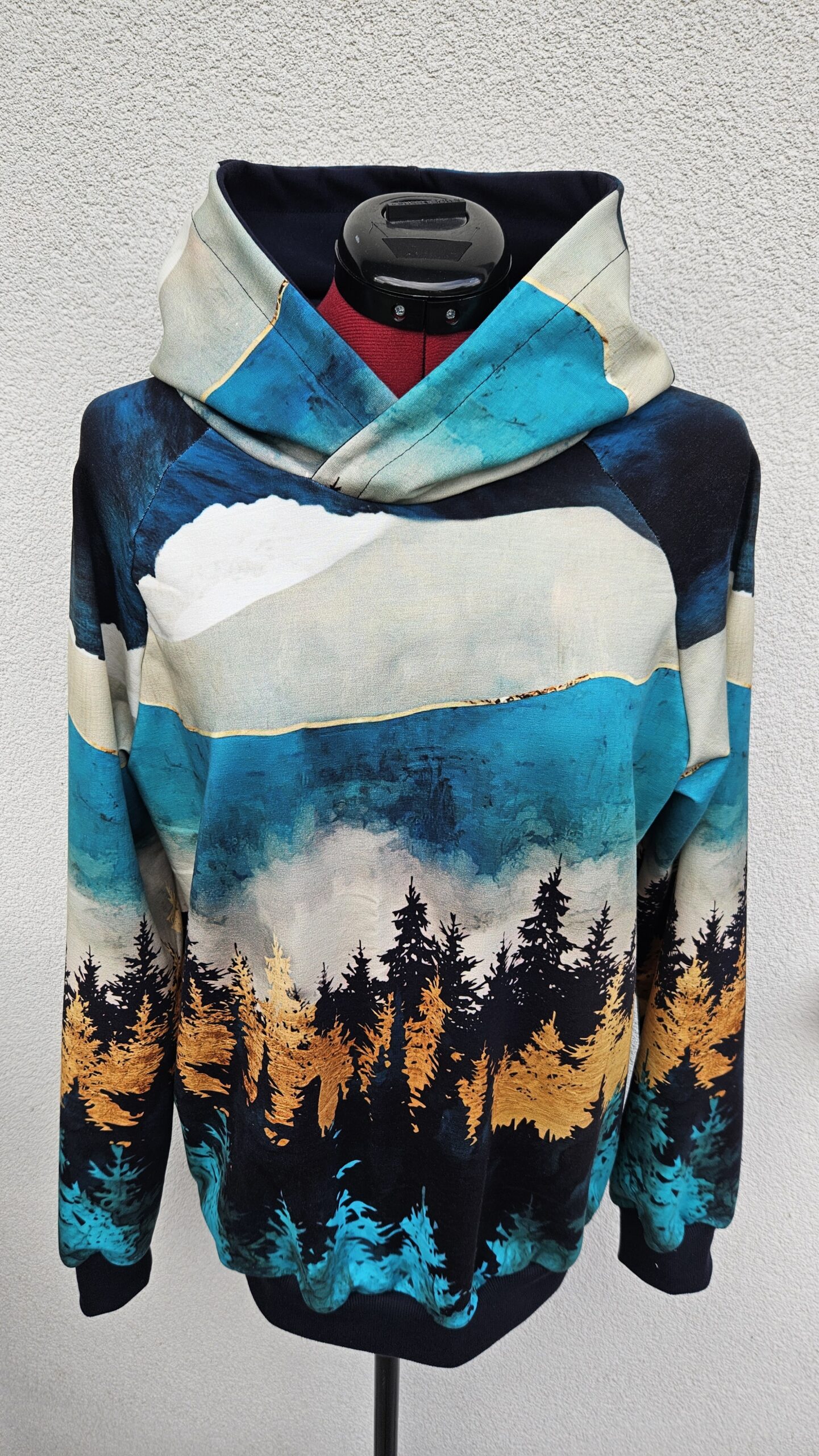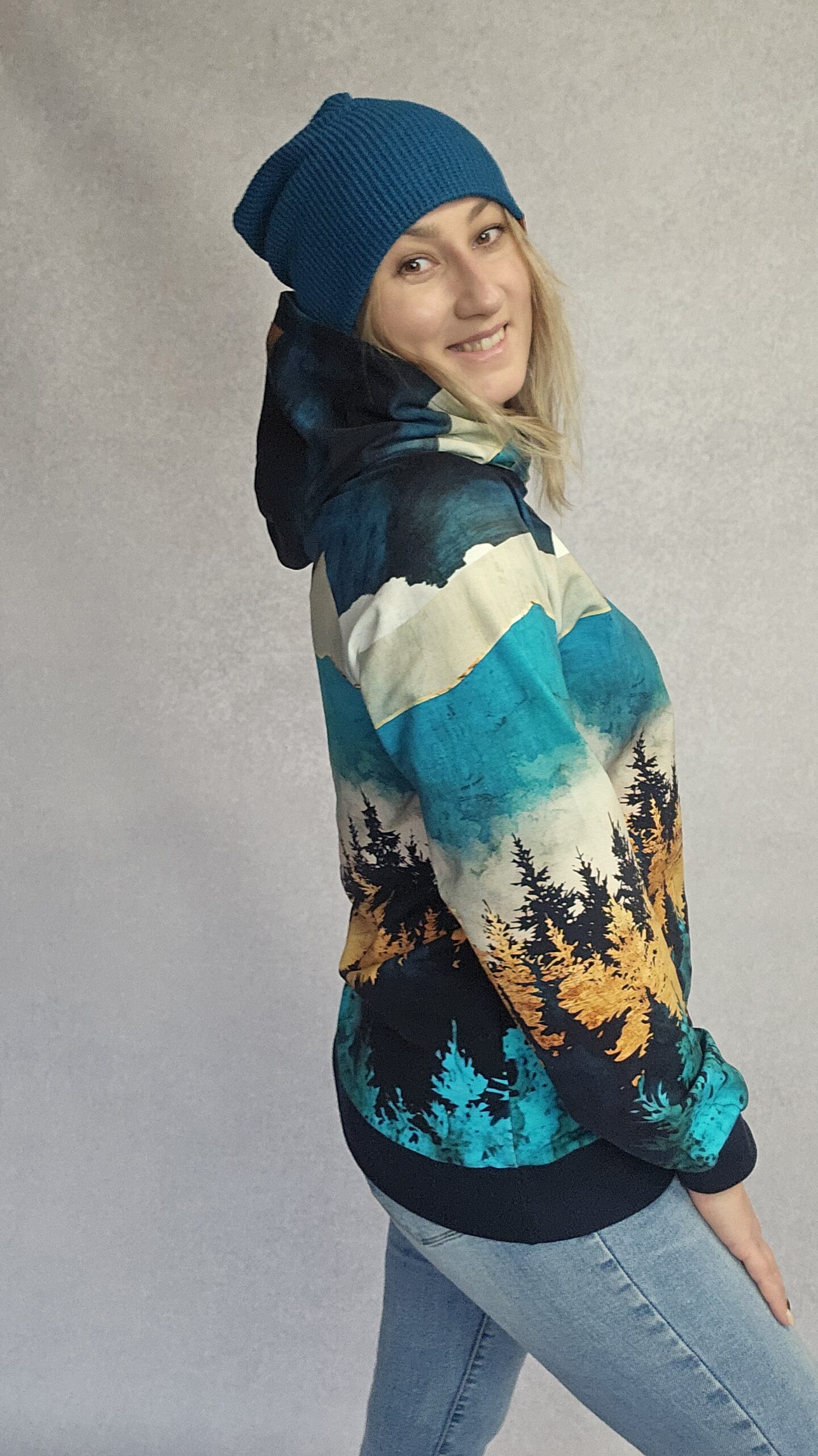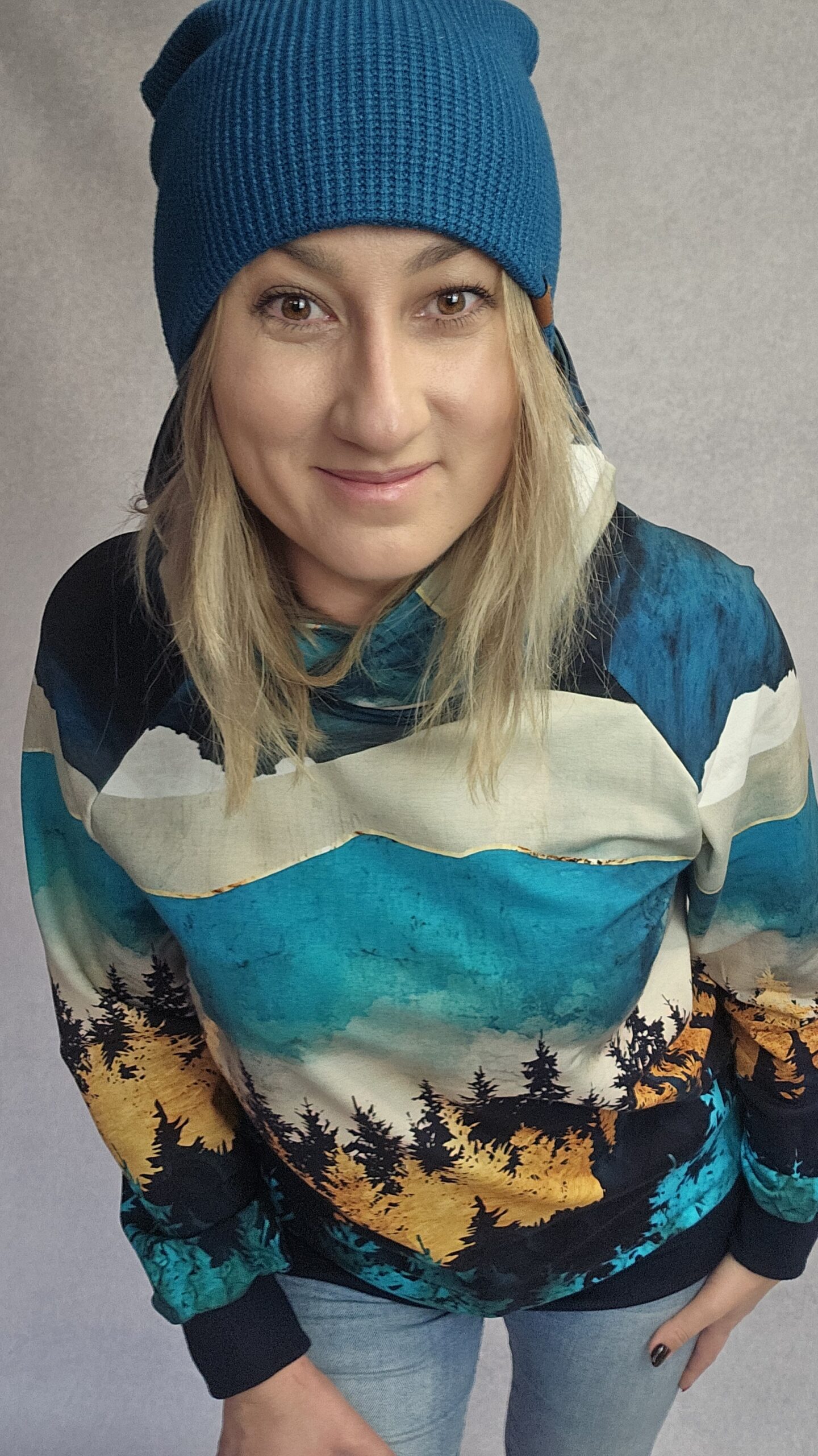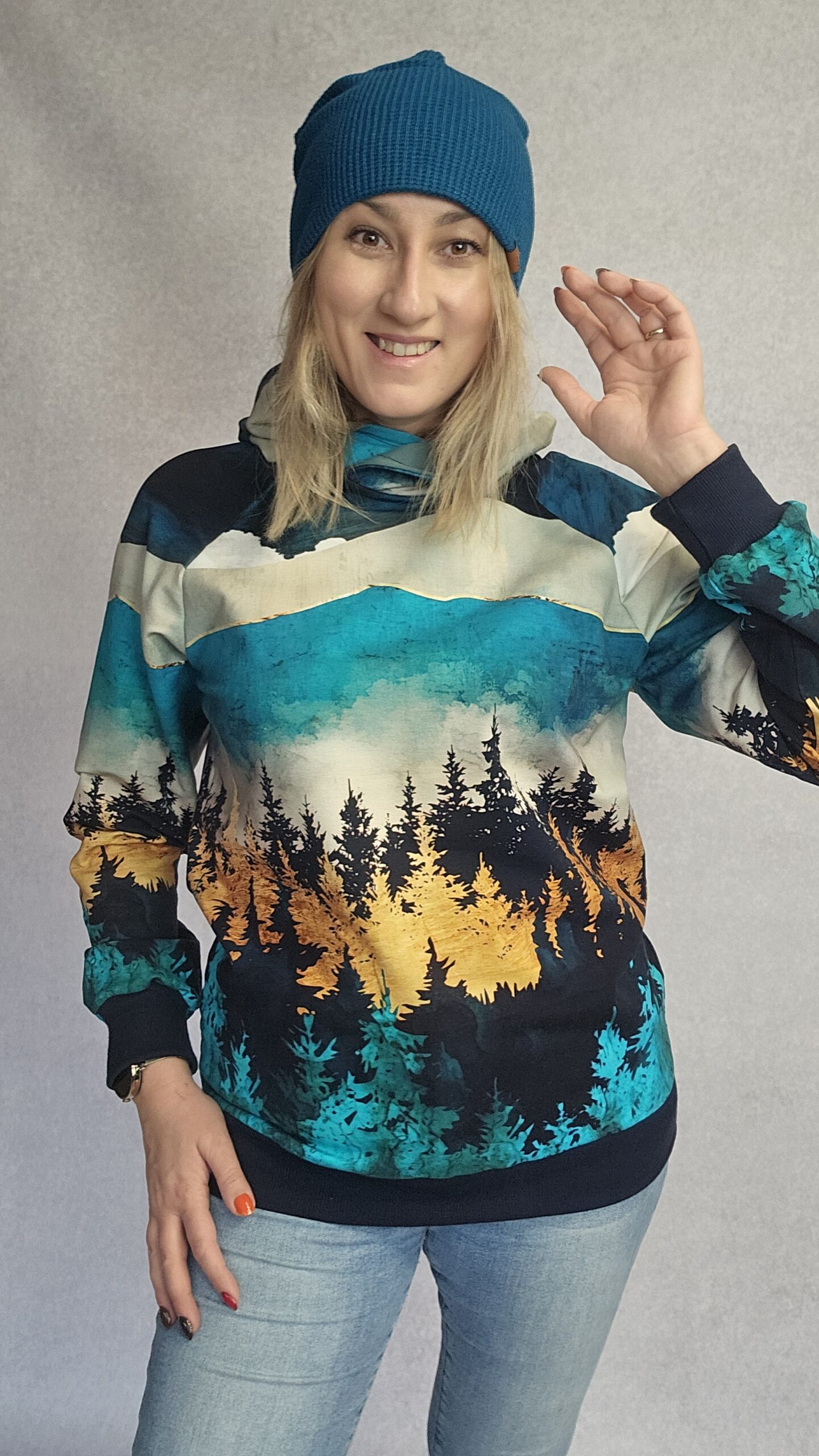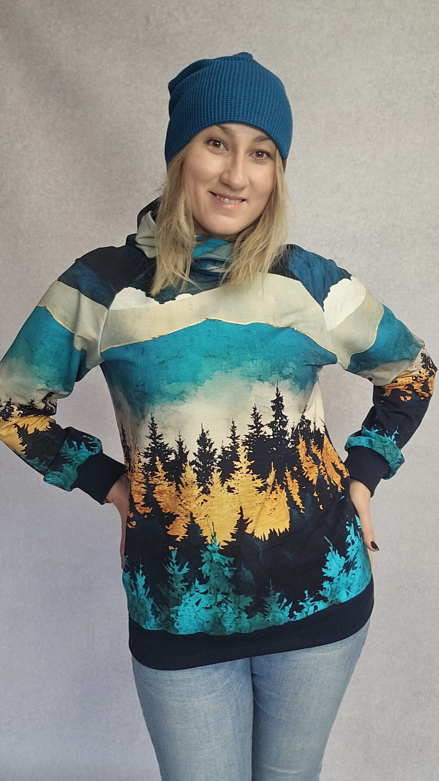 Bluza Unisex dla fanów pieszych wędrówek, miłośników gór i lasów. Coś zarówno dla niego jak i dla niej ale przede wszystkim dla tych którzy lubią przełamywać konwenanse. Wygodny kaptur i kieszeń kangurka, rękaw raglanowy. Skład materiału 95% bawełna 5% elastan. Bluza uszyta w rozmiarówce męskiej, patrz tabela rozmiarów.