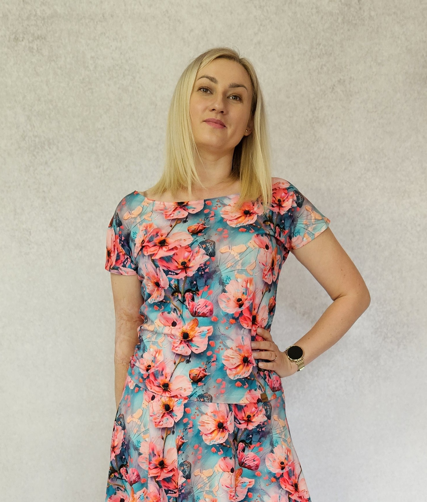Bluzka z krótkim rękawkiem skrojonym z całości, idealne dopełnienie spódnicy AURELIA.