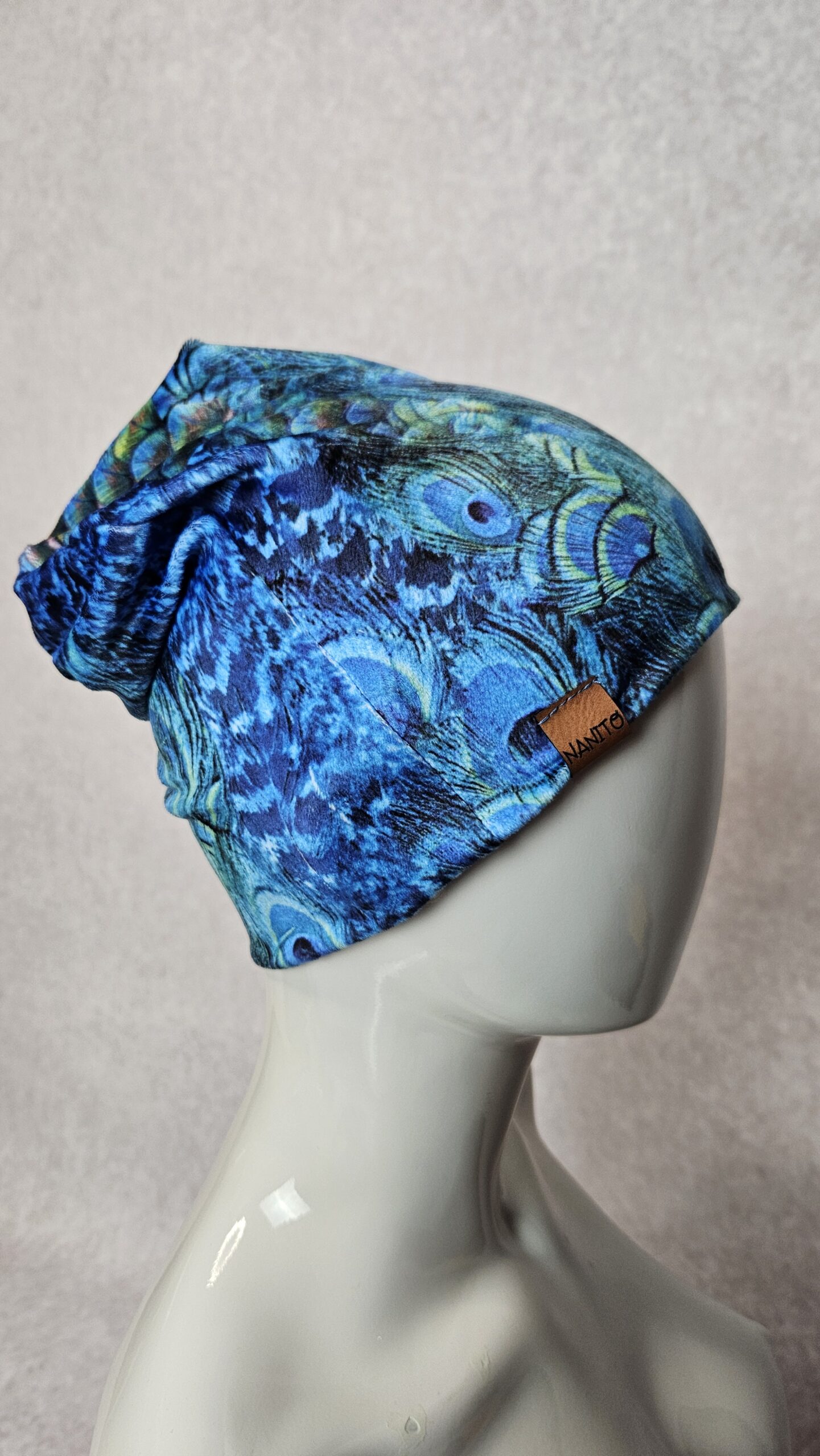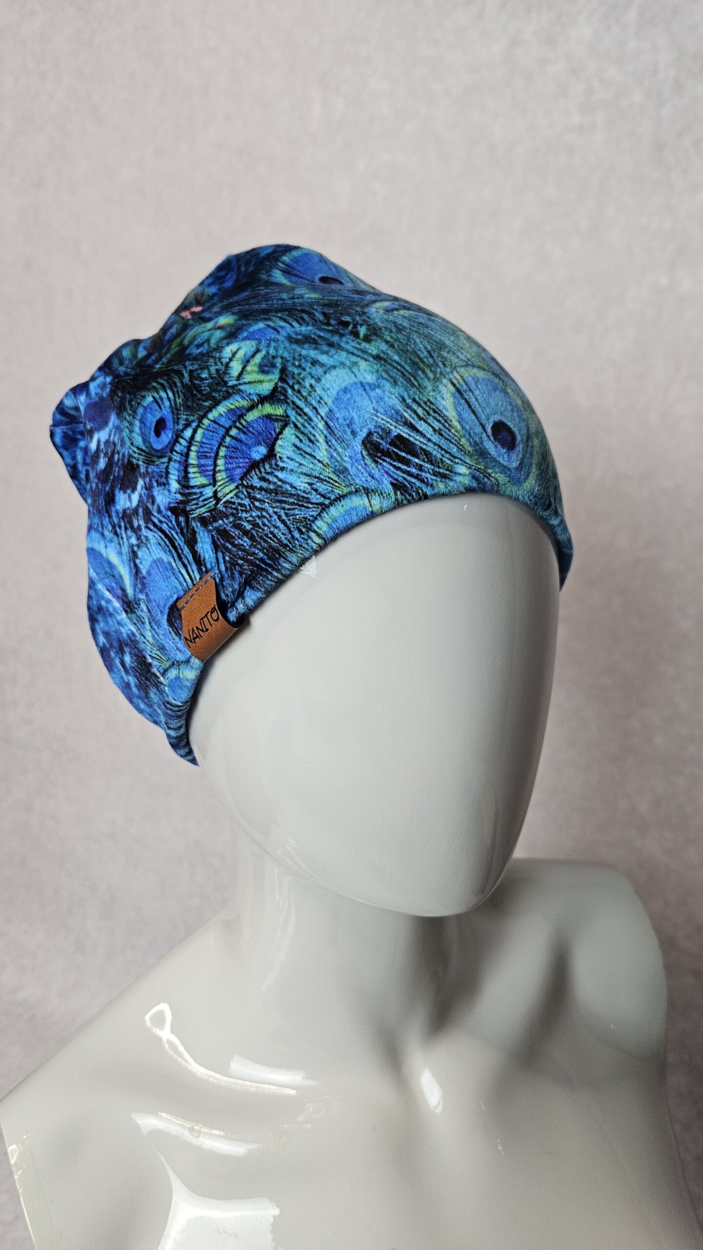Czapka typu smerfetka. Uszyta z dzianiny welur, miękkiej i niezwykle przyjemnej w dotyku.